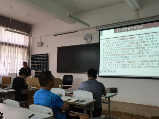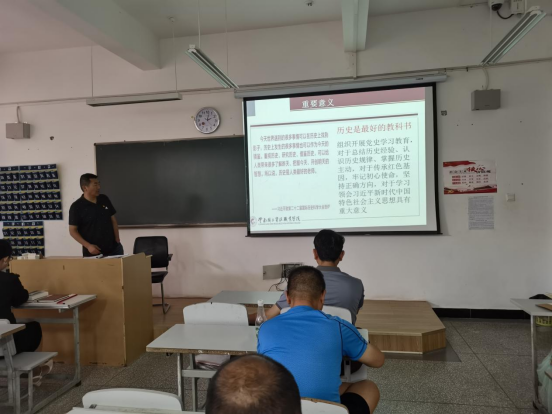 杨飞书记从中国共产党建立开始为党员教师们梳理了党的发展历程,他强调:“历史是最好的教科书。”组织开展党史学习教育,对于总结历史经验、认识历史规律、掌握历史主动具有深刻的意义。广大教师特别是青年教师要传承红色基因,牢记初心使命,坚持正确方向,对于学习领会习近平新时代中国特色社会主义思想具有重大意义。最后,杨书记要求全体党员教师结合生活实际思考三个问题:中国共产党为什么“能”?;马克思主义为什么“行”?;中国特色社会主义为什么“好”?希冀教师们能够从党史学习教育中,学有所思、学有所悟、学有所得。