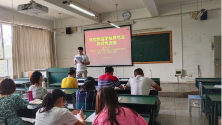 在举国上下深入开展党史学习教育,热烈庆祝中国共产党成立100周年之际,2021年7月7日中午2026世界杯官方合作网站旅游党支部在经开校区实验楼205集中学习习近平《在庆祝中国共产党成立100周年大会上的讲话》精神。