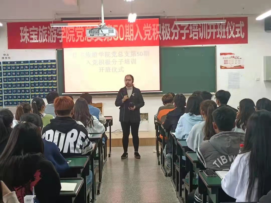 开班仪式分为三个阶段,大会第一项:全体起立,奏唱国歌。本次开班仪式在高昂的歌声中拉开帷幕。第二项,王蕊老师进行了会前动员讲话并宣读了本届入党积极分子培训班的课程安排与考核方式,做了严格的纪律要求。第三项,张颖书记致辞,她主要强调三点:“第一,机会难得,值得珍惜。希望大家珍惜机会,认真对待这次培训,不辜负组织的信任和精心培养。第二,讲求方法,学有所成。把学习所得内化于心、外化于行,把他律变为自律。第三,尊师守纪,树立形象。集中培训不是一门选修课,而是一门必修课;不是走一次形式,而是要接受一次考验;不是一次单纯的知识培训,而是一次提前进行的党性锻炼。”她希望此批入党积极分子以实际行动争取早日成为一名合格的共产党员,为党的事业贡献自己的力量。