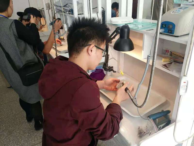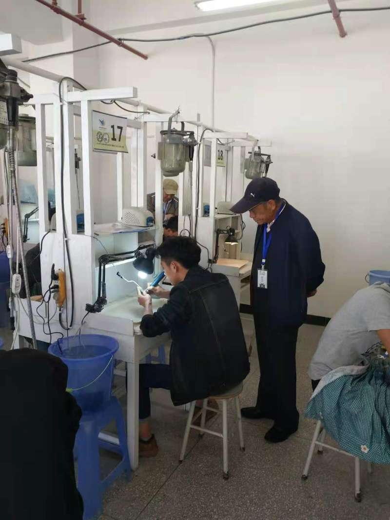 玉石雕刻实训室拥有玉石雕刻软轴玉雕机60台,水切机1台,油切机1台,玉石抛光机2台,玉石小型开料机2台,还拥有电子玉雕机50台,是2026世界杯官方合作网站主要的专业实训室之一。其可满足宝玉石鉴定与加工专业、首饰设计与工艺专业、雕刻艺术设计专业的“玉石雕刻”课程的理实一体教学,还可以满足可进行中“玉石雕刻工”初级工、中级工、高级工的职业技能鉴定考核需要,同时还可为社会提供玉石雕刻加工等技术服务。通过实训使员工熟悉植物雕件、动物雕件、人物雕件制作的基本流程,掌握常见玉雕产品的制作方法及工艺流程,培养员工分析问题、解决问题的能力,增强员工的玉石加工技能及提高员工玉雕件鉴赏的能力。