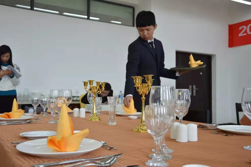 2.可全面系统的开展中餐服务技能实训,如托盘、铺设台布台裙、摆台、餐巾折花、酒水服务、餐饮服务等,以及用餐礼仪及会议服务礼仪的训练。