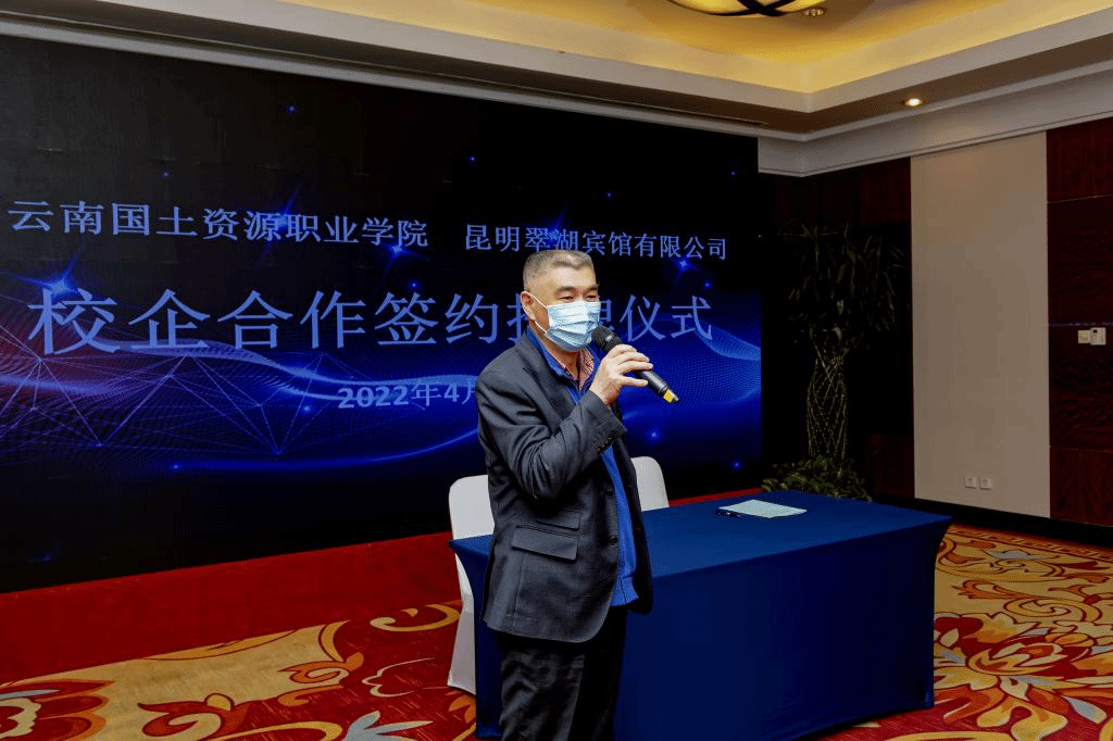 仪式上,昆明翠湖宾馆有限公司党支部书记刘勇先生首先致欢迎词并表示,企业和公司合作可以优势互补、资源共享,培养出真正适应市场和社会需求的人才。他希望双方精诚合作,以达到相互促进,共同发展的目标。