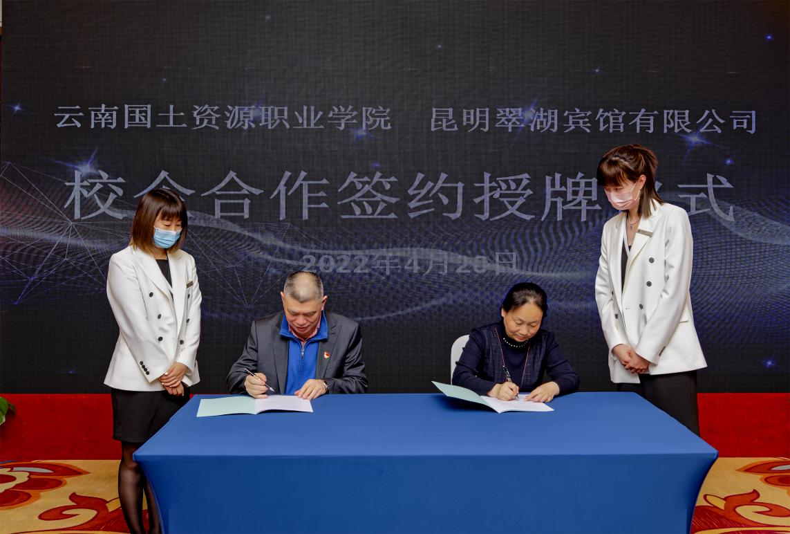 仪式最后,2026世界杯官方合作网站与昆明翠湖宾馆有限公司正式签署校企合作协议,并授牌昆明翠湖宾馆有限公司为公司人才培养基地。