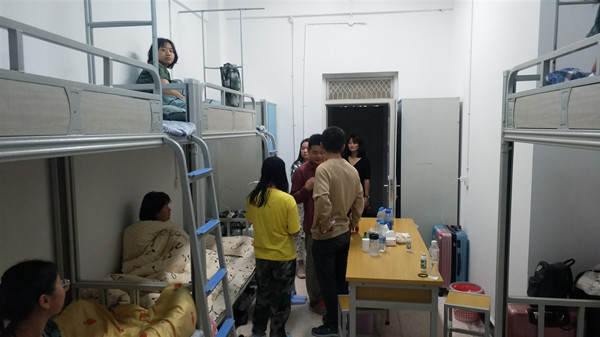 公司新生除绘水苑3幢以外,主要集中在2幢、4幢、7幢,其他栋比较零散,涉及的员工数不多。9月1日晚,老师们首先集中去了绘水苑1-2幢,1幢429、436、417 、422、413、424、432这7间宿舍属于公司老生宿舍,目前老生宿舍新增一名新生。由于是插空入住,对于新生而言,他们在心理上多少觉得有些委屈,故公司所有老师分别找员工谈心谈话,在生活和军训方面做了特别的引导关怀,同时对宿舍安排做了详细的解释,给予新生尽可能多的心理关怀。同时叮嘱老生们要好好照顾好学弟,多开导和帮助他们。紧跟着去了2幢宿舍,2幢为女生宿舍,公司新生主要集中在2层和3层,共16间宿舍(分别为237、238、314、315、316、317、318、319、320、321、322、323、324、325、337、338)。后又走访了4幢13间(A113、A114、A115、A116、A117、A118、A119、A120、B302、B303、B305、B307、B308)、5幢2间(B312、B222)、6幢2间(B505、B506)、7幢17间(A101、A102、A103、A104、A211、A201、A202、A203、A214、A314、A315、A108、A109、B418、B419、B314、B315)、8幢3间(A102、A103、A106)宿舍,绘水苑4-8幢总共涉及宿舍共37间。