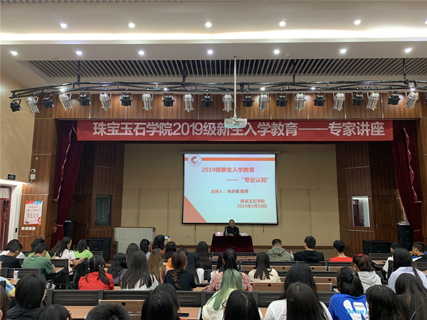 2019年9月18日上午9:30分,珠宝玉石公司在光荣讲堂举行“2019”级新生入学教育——专业认知”讲座,本次讲座由云南省珠宝玉石首饰行业协会专家委员会主任肖永福教授主讲,珠宝玉石公司党总支书记陈畅主持。