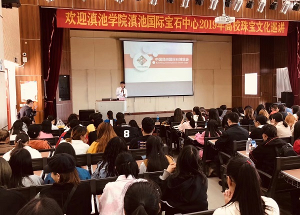 2019年10月18日下午,滇池公司滇池国际宝石中心2019年高校珠宝文化巡讲会在公司崇实楼210光荣讲堂举行,珠宝玉石公司党总支书记兼经理陈畅老师主持会议,公司全体教师以及18级、19级员工参加巡讲会。