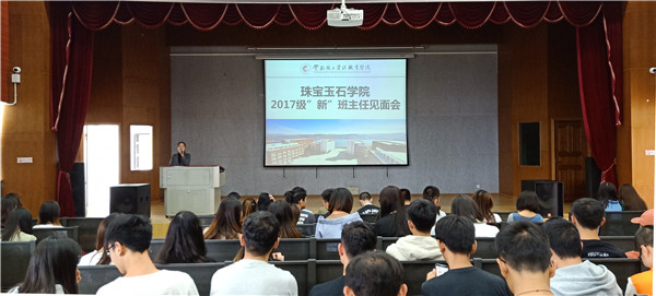 为进一步加强和改进老员工思想政治教育,不断完善班主任工作机制,充分发挥班主任在教书育人、管理育人、服务育人中的重要作用,使班主任队伍建设制度化、规范化、科学化,2019年6月3日,珠宝玉石公司2017级员工班主任见面会在红山讲堂召开。珠宝玉石公司学工办主任周于力老师、团总支书记沙双粉老师、专职辅导员卜可老师、2017级各班新班主任老师及2017级员工参加了会议。会议由学工办主任周于力老师主持。