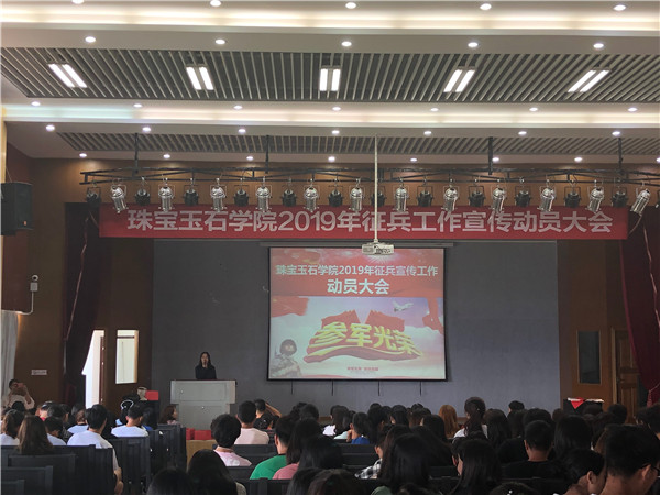 2019年6月13日,珠宝玉石公司在红山讲堂进行2019征兵动员大会。珠宝玉石公司征兵工作负责人周于力老师从同学们最关心的优惠政策出发,介绍了云南省2019征兵政策以及公司征兵优惠政策,对于每条优惠政策进行了详细的解读,鼓励同学们积极应征入伍,走进军队,为国防事业作贡献。同时,为更好地帮助意向参军的同学了解政策、报名流程以及对相关注意事项进行详细说明,珠宝玉石公司在勘物楼A309多媒体教室召开答疑会,同学们对征兵相关政策、报名流程操作有了更深刻的理解。