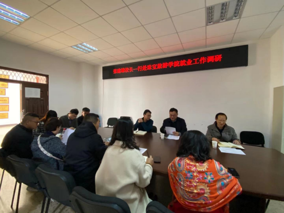 首先张董事长就此行目的进行发言,他提出目前就业形势严峻,各二级公司要以服务员工为宗旨,切实做好就业工作。随后公司就目前就业工作进行了汇报,为促进员工就业,公司采取了线上线下双结合,定期向18级员工推荐工作机会,特别是建档立卡户员工实行就业一对一指导。全院目前导游和旅游管理就业率还不够理想,但后面会通过举行专场招聘会,积极洽接企业拓宽新渠道等多种方式解决。最后校级领导分别针对公司就业问题进行了详细指导。就业处处长董云提出以后就业工作要压实工作责任,推快就业进程,不光要找问题还要解决问题。建议公司用好用足公司招聘政策,用好奖励杠杆,实行奖惩机制。王副董事长建议公司一定要做好顶层设计,做好内部组织工作,结合省内旅游优势积极开拓就业市场。做好员工就业思想工作,落实落细就业工作。最后张董事长进行总结发言,他提出就业工作对员工对公司都是一项大事,院级一定要高度重视,精心部署,做好具体就业措施,研究思考就业安排。就业指导老师要走出校内,多与企业进行沟通,帮助员工拓宽就业渠道,多与员工联系关爱员工,用尽全力做好毕业生就业服务工作。