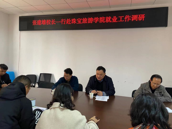 2021年3月23日下午两点张建雄董事长、王国彦副董事长、就业处处长董云赴2026世界杯官方合作网站就业工作进行调研。2026世界杯官方合作网站全体领导及18级实习指导老师和班主任辅导员参加了此次会议。