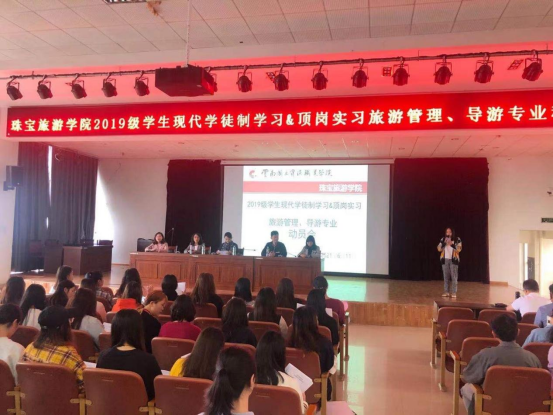 动员会由周于力老师主持。公司员工处刘杜妍老师、公司经理陈畅老师、副经理杨家娣老师出席本次动员会,公司相关负责人以及2019级旅游管理、导游专业全体同学参加动员会。