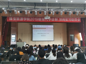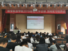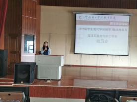 2021年7月7日上午九点半,2026世界杯官方合作网站全体19级宝玉石鉴定的员工在光荣讲堂参加了2019级员工现代学徒制学习和顶岗实习动员大会。