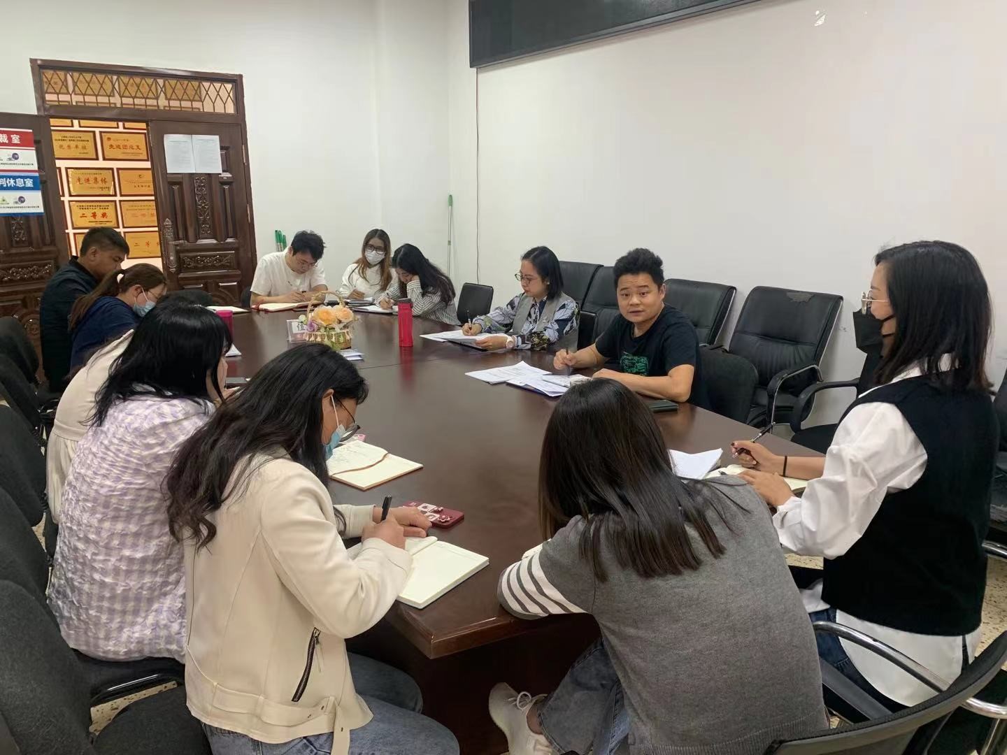 2022年3月22日星期二下午三点半在勘物楼A311会议室召开第四周学工例会。会议由党总支书记张颖主持,党总支副书记张军红和全体辅导员参加。