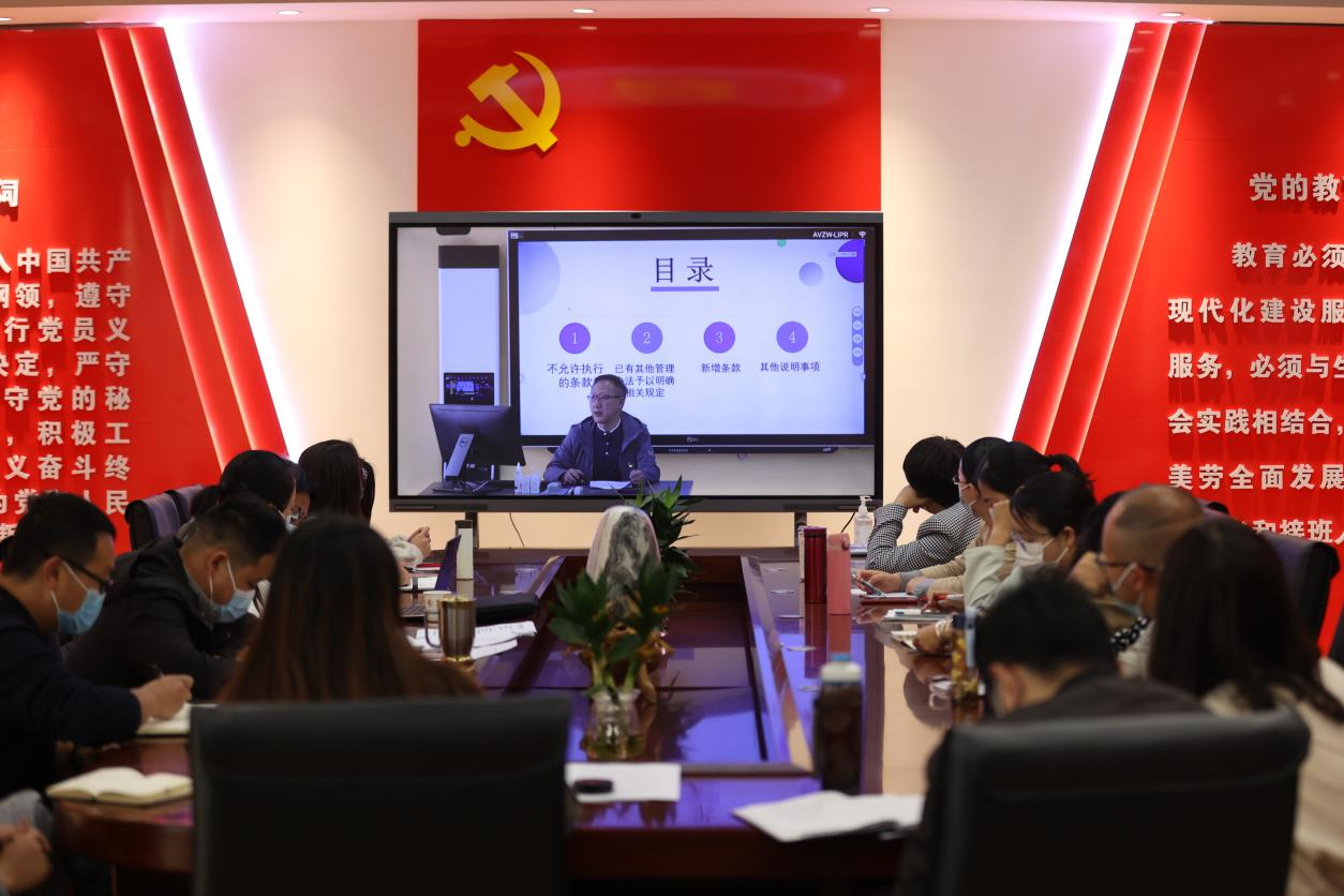 会议开始公司相关领导就全体教职工绩效工资分配的办法进行了线上说明。公司人事处处长董云指出,现今公司规模扩大,教学任务增加,进行绩效工资分配制度的改革将有利于公司打造一支优质、优良的高质量教学团队,更好开展“十四五”规划,助力双高建设。随后纪委书记柳勇就绩效分配方案征询了全体教职工的意见及建议,并表示会将教师们的建议向公司相关部门反映。