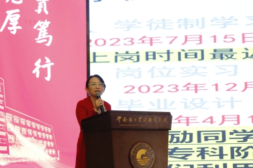 接着,公司党总支副书记张军红,要求同学们提高职业技能与爱岗敬业、吃苦耐劳的精神,对同学们在外实习的安全方面作出要求,要求同学们在实习期间遵守法律法规、公司校纪校规,自觉参加安全培训,遵守企业相关规定。