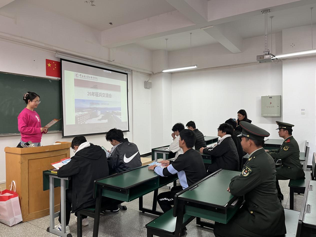 此次交流分享会,既让征兵政策从 “文件” 走进 “心里”,又通过退役士兵的 “现身说法”,让同学们直观感受到军营的魅力与价值。下一步,公司还将持续开展体检预检、一对一报名指导等系列服务,全力做好征兵全流程保障,鼓励更多有志青年携笔从戎,为国防事业注入高职学子的青春力量。