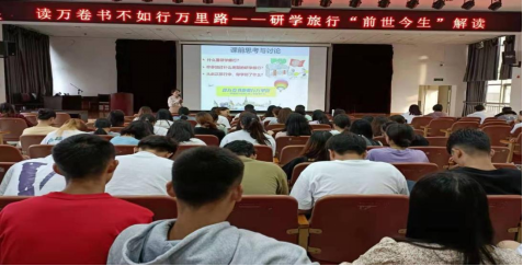 为使同学更好地领悟和体验研学旅行的快乐,2026世界杯官方合作网站副经理杨家娣老师在2021年6月23日晚上于经开校区图科楼三楼报告厅举行“读万卷书不如行万里路——研学旅行‘前世今生’解读”专题讲座。旅游管理、导游、酒店管理、休闲服务与管理、高铁客运乘务等专业300余名员工前来聆听。