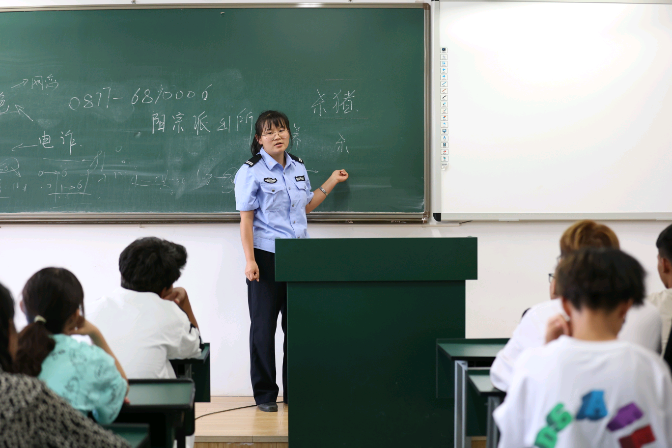 活动中,警官们紧紧围绕着“预防电信诈骗”这一主题,向同学们介绍了一些主要诈骗的类型,并通过一些典型案例讲解了网络诈骗和校园贷的危害性,提醒同学们要时刻警惕,不给犯罪分子可乘之机。警官们还向同学们讲解了如何防范电信诈骗、网贷等的一些技巧和方法,提醒同学们发现上当后应立即采取紧急补救的措施。最后阳宗派出所的警官们还向同学们介绍了“金钟罩”反诈预警系统,并在现场耐心地指导同学们安装,将“金钟罩”反诈预警系统的功能、注意事项等也做出了一些讲解。
