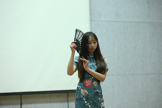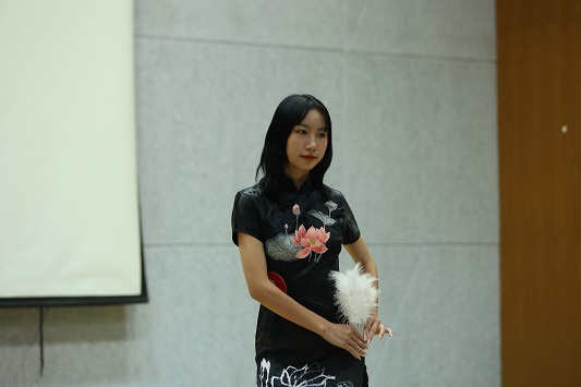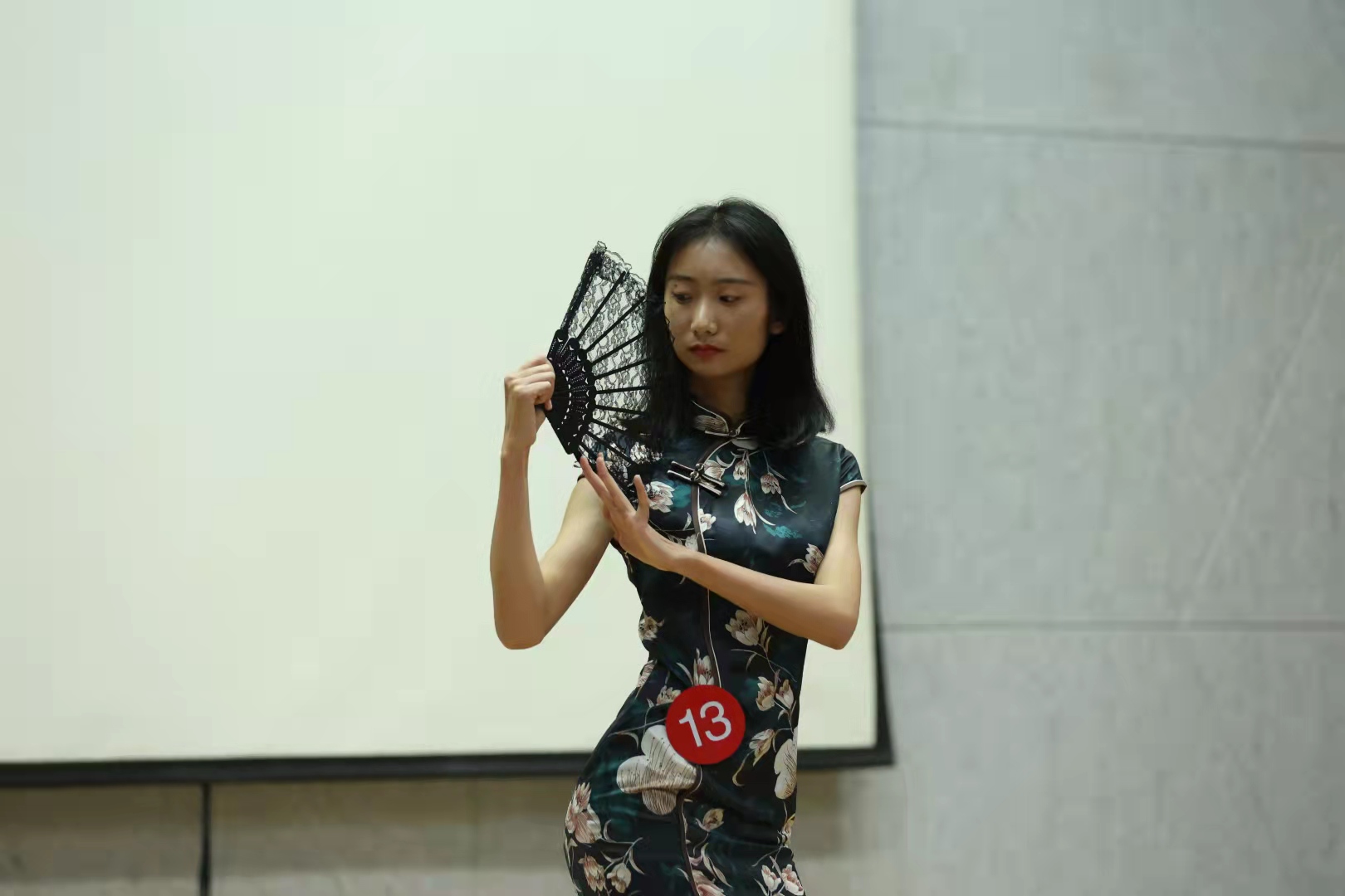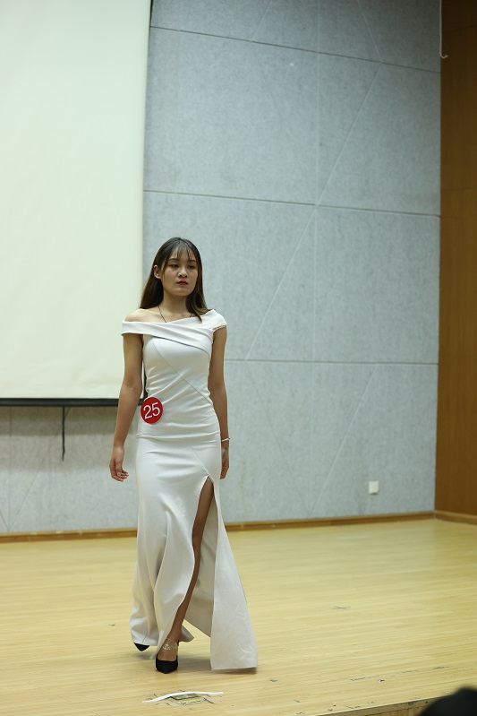 舞台上,一首中国风的音乐响起,模特们一一上台走秀,她们身着旗袍真是所谓中华有佳人,芳龄韶华,眉目如画。着一袭旗袍,香风细细在陌陌红尘里,婀娜多姿,暗香流韵。流水的线条,轻微的挪步,一颦一笑,韵味十足,尽显东方女性之美。第一轮旗袍秀结束,舞台上又响起了一首英文歌,模特们再一次走上舞台,这次她们身着西式礼服,当裙摆随着模特的步伐而摆动时,礼服更加衬托出了选手们优美的身姿与线条。她们踏着高跟鞋,大步且自信的在舞台上展示着自己,充分展现了女性热情张扬的个性,她们是新时代女性,自信、独立且勇敢。当男生身着西服走上舞台,他们步伐沉稳,坚定。他们的一举一动都透露着男士该有的沉着、冷静,尽显绅士之风。