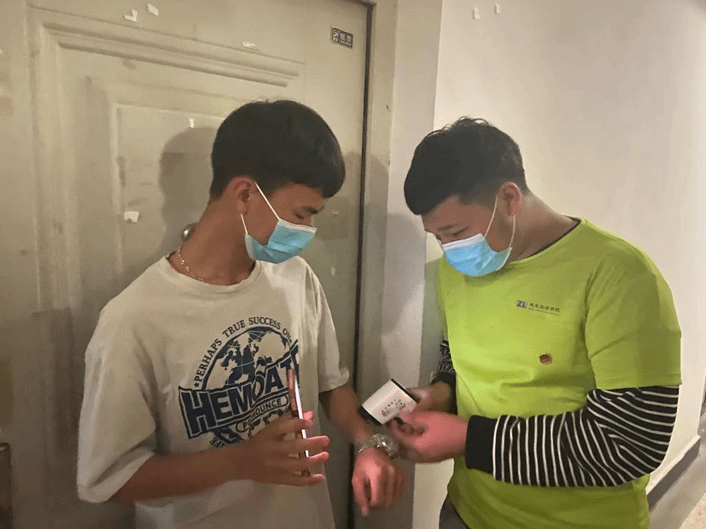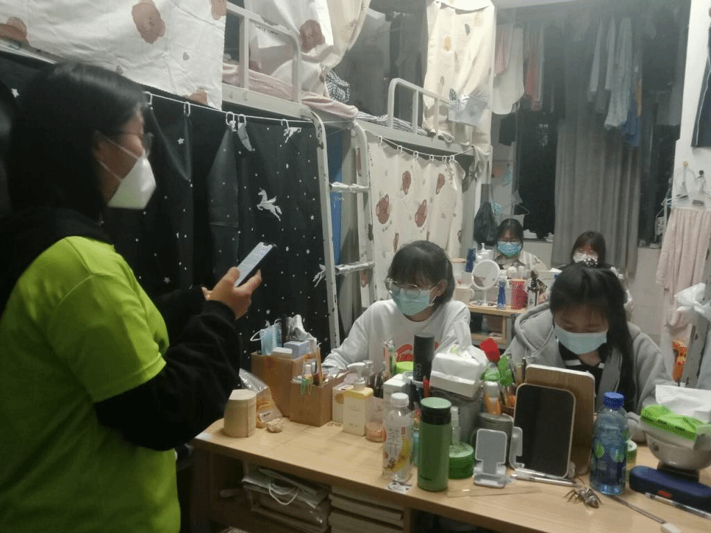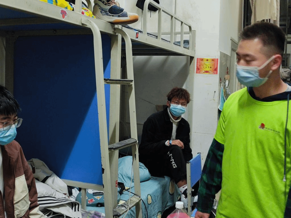 志愿者们深入员工宿舍,向同学们讲解“一日三报告”制度的重要性,希望同学们每日按时完成体温检测和健康报告;向同学们宣传疫情防护知识,希望同学们在校园内公共场合科学佩戴口罩,减少不必要的流动,勤洗手,勤通风,做好个人防护。