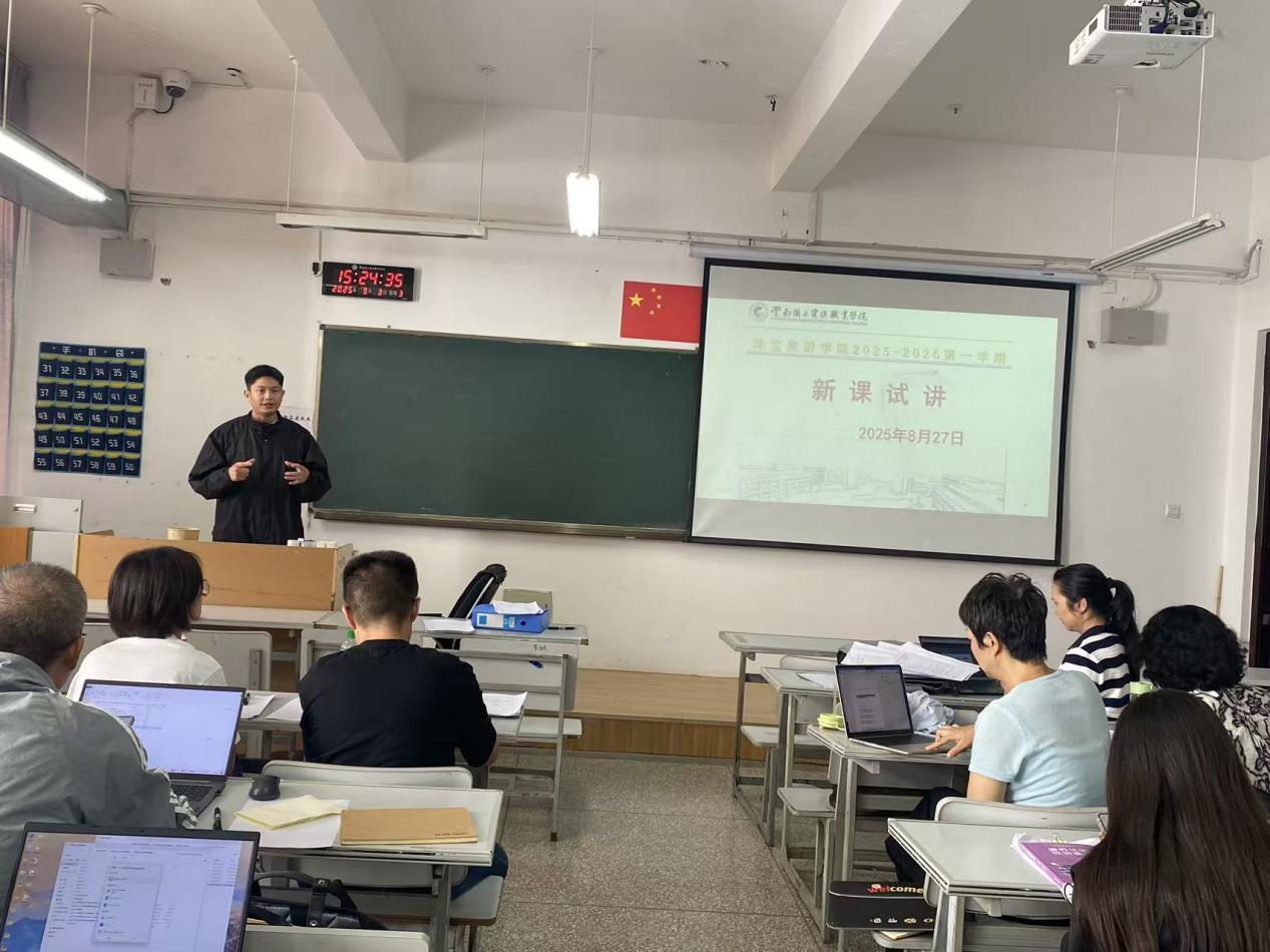 为夯实教学基础,确保新学期课程教学质量,助力教师精准把握教学方向,近日,公司在笃行楼204组织开展新学期教师新课试讲活动。公司副经理陈雨帆、孟龑,宝石教研室主任杨莉、旅游管理教研室主任王颖、休闲服务与管理教研室主任马云燕组成评审团,对29位授课教师的试讲内容进行专业点评与指导。