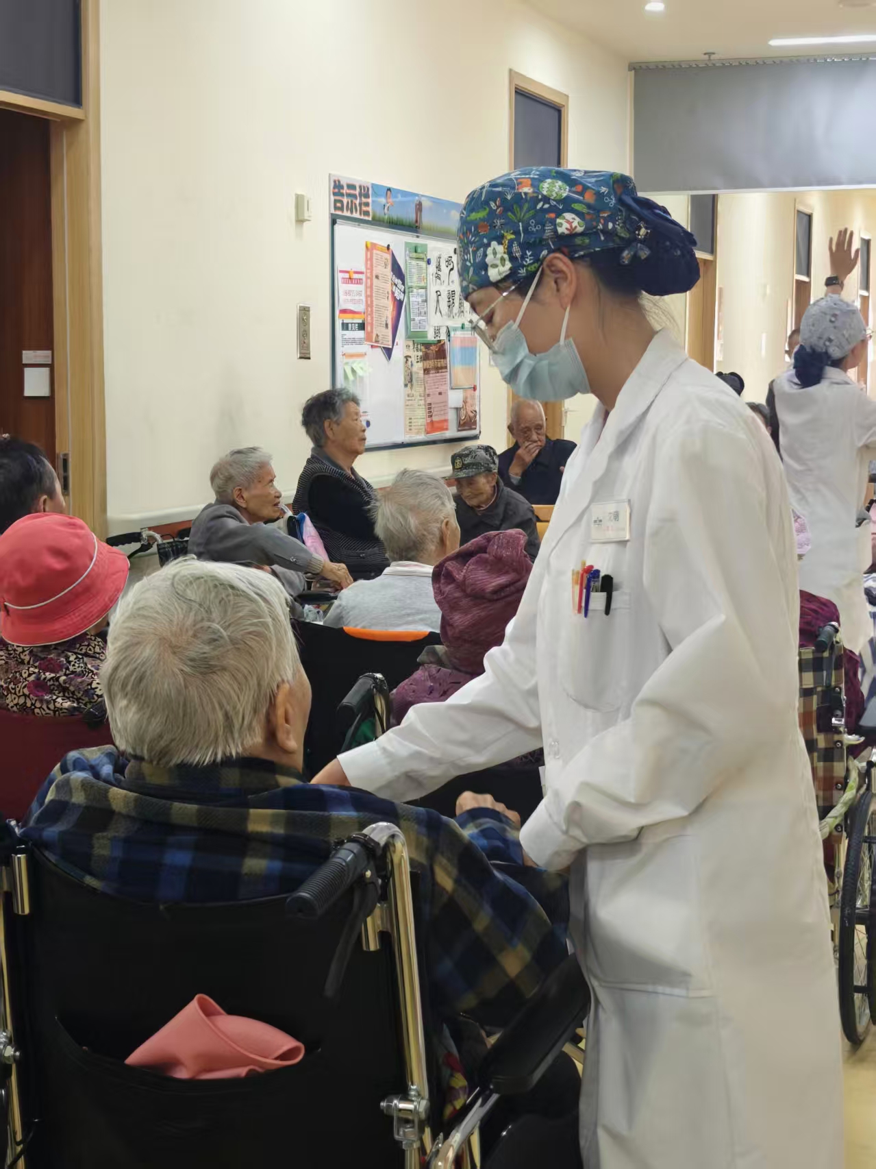 在中心相关负责人的陪同下,教师团队参观了一心医养的医疗中心与康养中心,实地察看员工实习环境。据企业介绍,一心医养设有内科、康复科等多个临床科室,不仅为入住长者提供全方位的医疗照护,还面向社会失能、半失能人群提供全周期医疗护理、康复促进和安宁疗护等专业服务。教师们对企业的服务模式与发展成效给予高度评价,并亲切慰问在岗实习员工,勉励大家把握实践机会,锤炼专业技能。